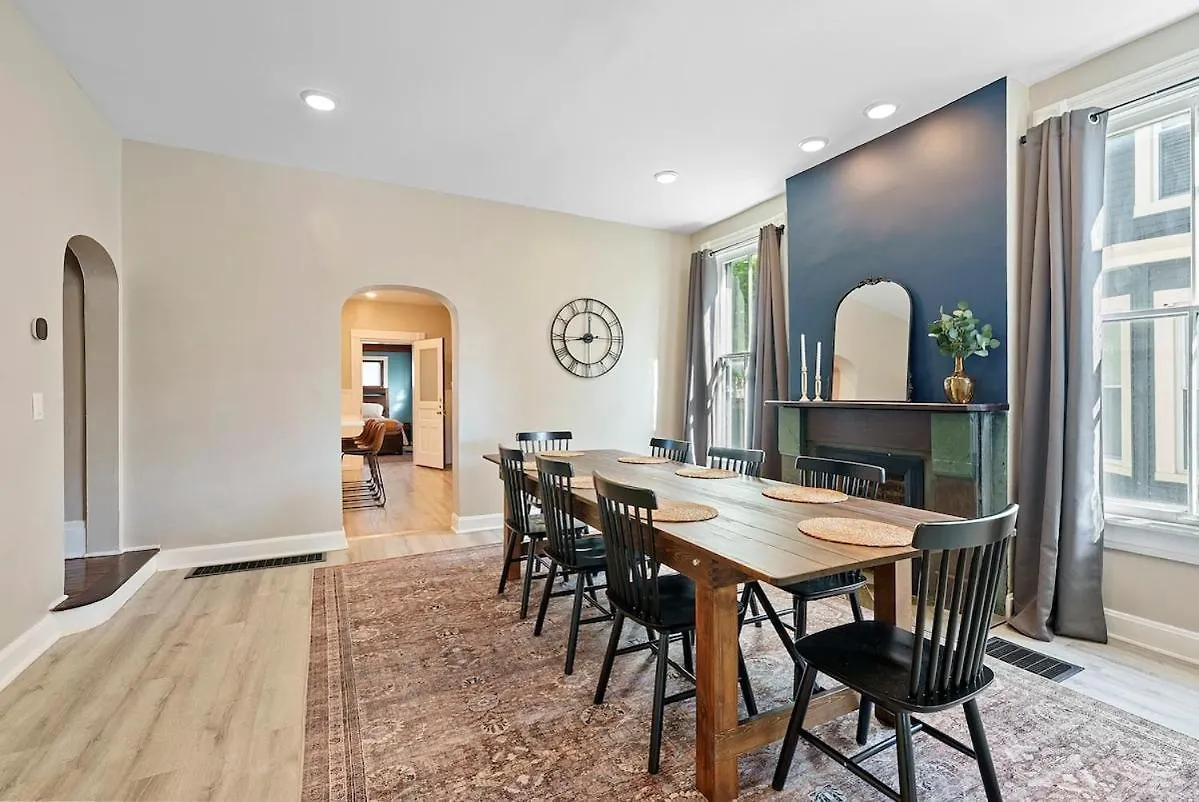 Cet hébergement comprend une cuisine complète, ainsi qu'un coin repas extérieur pour préparer vos repas. Vous pouvez également utiliser un micro-ondes, une cafétière/théière électrique et un réfrigérateur pour préparer votre propre repas. Vous pourrez déguster des plats américains à North High Brewing, situé non loin de cette villa. Perfect Location-Short North Home Huge4-Car Garage est également à environ 5 à pied de Summit St & E 5th Ave.